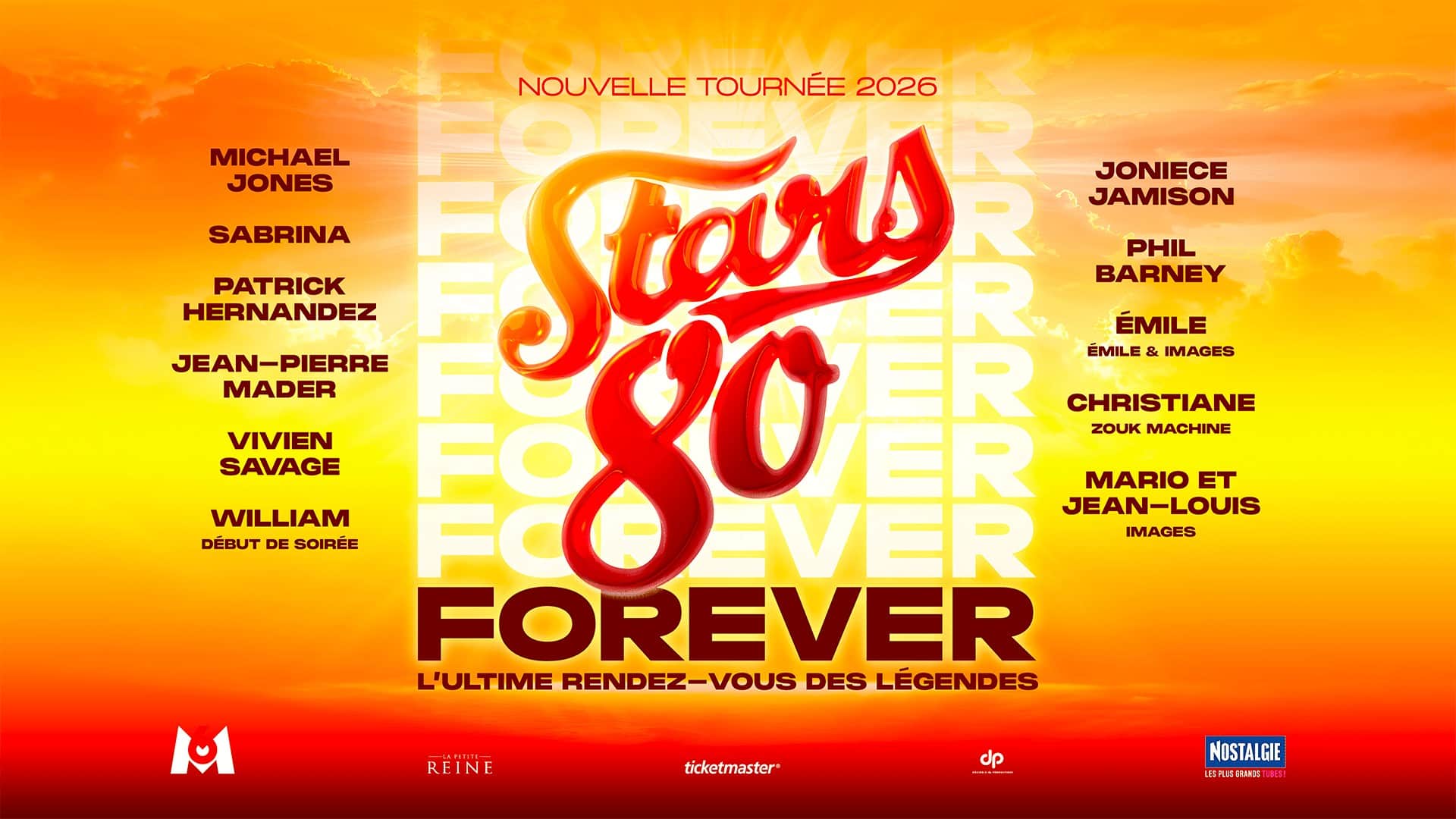 Accompagnés par leurs musiciens, les artistes rendront hommage une dernière fois aux tubes légendaires des figures emblématiques des années 80, l’occasion de revivre en musique cette décennie mythique.